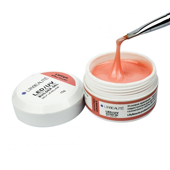 Гель для наращивания Lilly Beaute LED/UV Gel Soft Pink №5, 15 мл (Розово-персиковый)