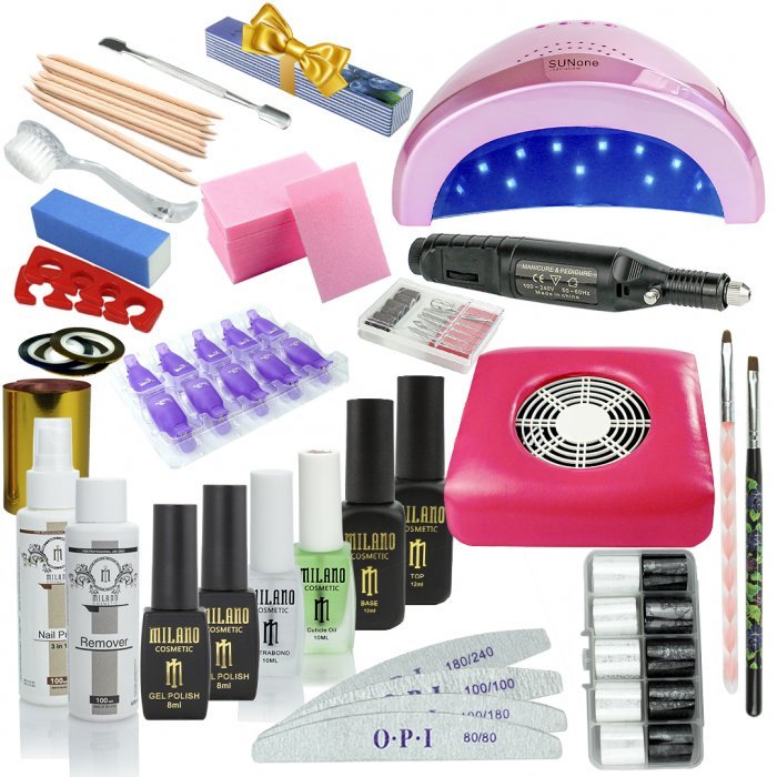 Набор мастера маникюра с гель-лаками, профессиональной лампой SUN ONE 48вт и мощным аппаратом для маникюра и педикюра Mini состоит из самых необходимых товаров для создания профессионального маникюра в домашних условиях.