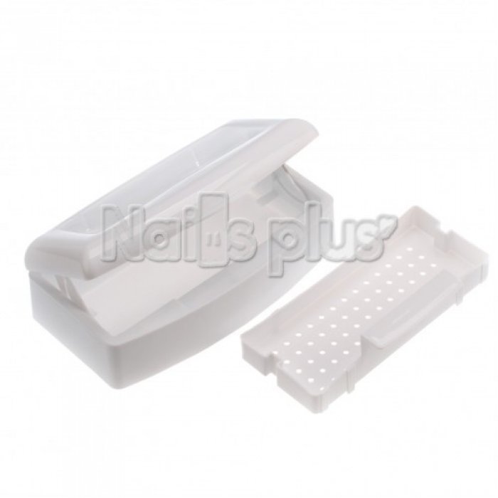 Представленная емкость используется для дезинфекции или стерилизации инструментов. Она заполняется дезинфицирующим раствором, внутри имеется поддон с дырочками, в котором можно промыть инструменты под проточной водой. Сверху емкость закрывается крышкой, благодаря которой поддон с инструментами погружается на дно.